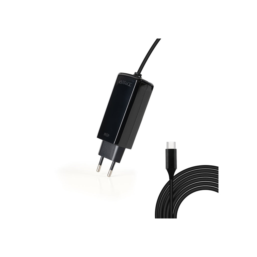 Tooq Cargador de Portatil GaN USB-C/PD 45W - Cable de 1.80m - Color Negro