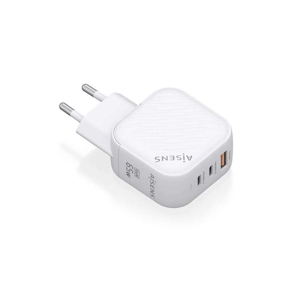 Cargador Gan 65W, 2xUSB-C PD3.0 QC4.0, 1xUSB-A QC3.0, Blanco
