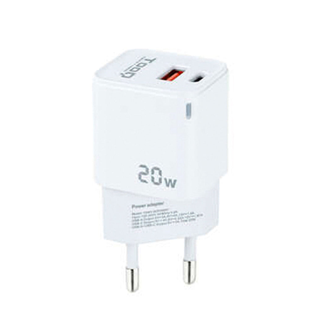 Tooq Cargador de Pared USB-C/PD + USB-A/QC 20W - Color Blanco