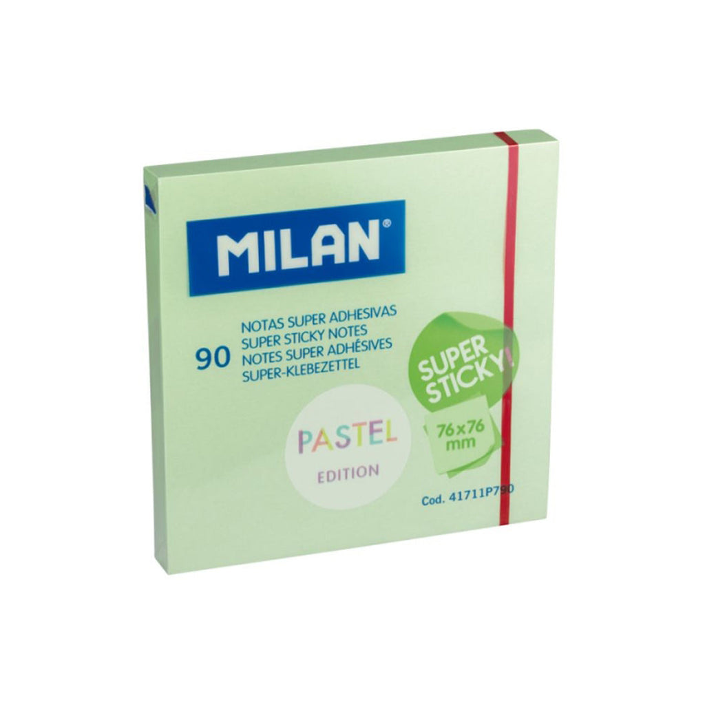 Milan Bloc de 90 Notas Super Adhesivas - Removibles - Mayor Permanencia - 76mm x 76mm - Color Verde Pastel