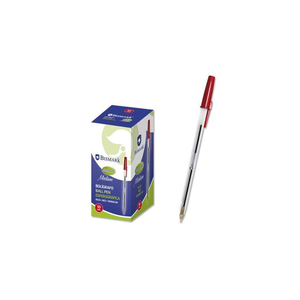 Bismark Boligrafo de Bola - Punta Redonda - Capuchon y Tapon del Color de la Tinta - Color Rojo