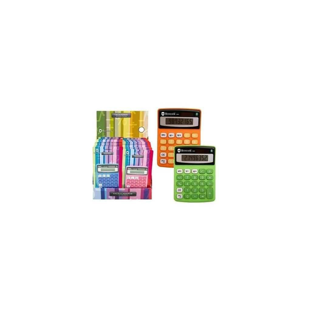 Bismark Calculadora Escolar de 8 Digitos - Funciones Basicas y Memoria - Alimentacion Solar y a Pilas - Colores Surtidos