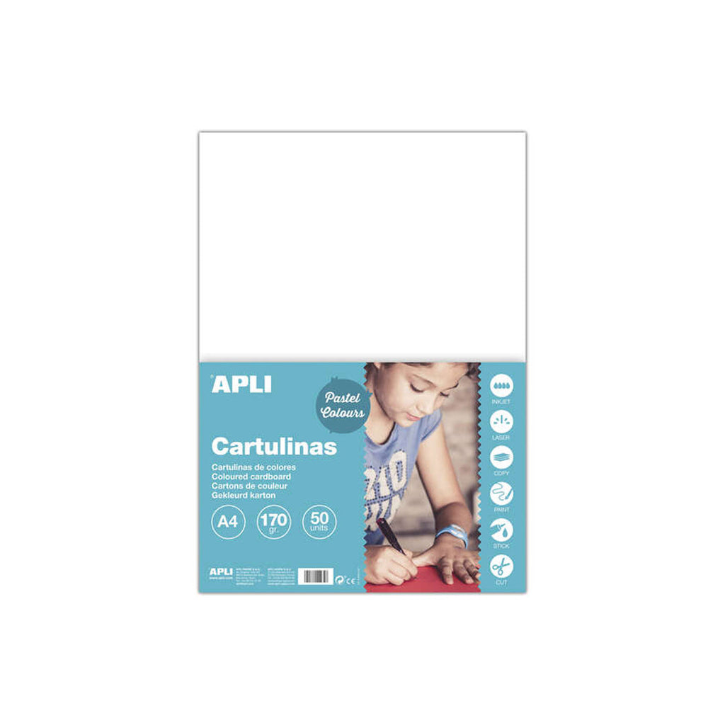 Apli Pack de 50 Cartulinas A4 170g - Libre de Acidos - Aptas para Uso Escolar - Color Blanco