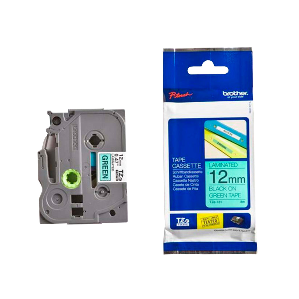 Brother TZe731 Cinta Laminada Original de Etiquetas - Texto negro sobre fondo verde - Ancho 12mm x 8 metros