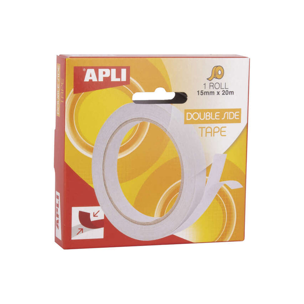 Apli Cinta Adhesiva Doble Cara 15mm x 20m - Facil de Cortar y Aplicar - Adhesion Fuerte y Duradera - Transparente Transparente