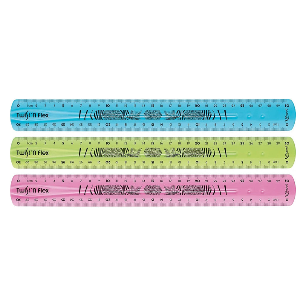 Maped Twist´n Flex Regla de Flexible 30cm - Irrompible - Doble Graduacion - Colores Aleatorios Azul, Rosa y Verde