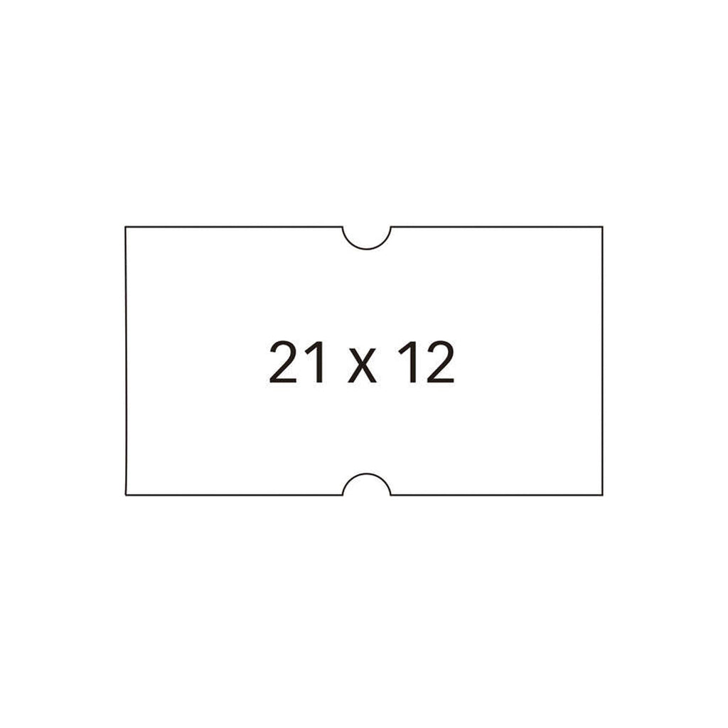 Las etiquetas blancas tamaño 21 x 12 mm para máquinas etiquetadoras de precios de 1 línea son un producto de alta calidad que te permitirá marcar de forma clara y precisa tus precios, referencias, fechas y cualquier otra información que necesites. Estas etiquetas vienen en un pack con 6 rollos, cada uno con 1.000 etiquetas, lo que te asegura una gran cantidad de etiquetas para tus necesidades. Además, estas etiquetas tienen adhesivo permanente con cantos rectos, lo que las hace muy fáciles de usar y colocar. Las especificaciones del producto son las siguientes: