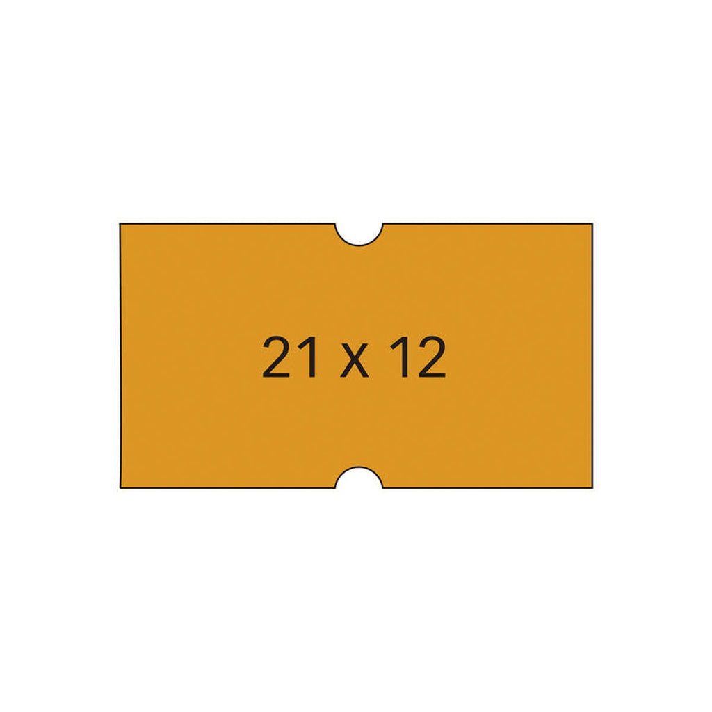 Etiquetas naranjas tamaño 21 x 12 mm para máquinas etiquetadoras de precios de 1 línea. Pack con 6 rollos (1.000 etiquetas/rollo). Etiquetas de adhesivo permanente con cantos rectos.