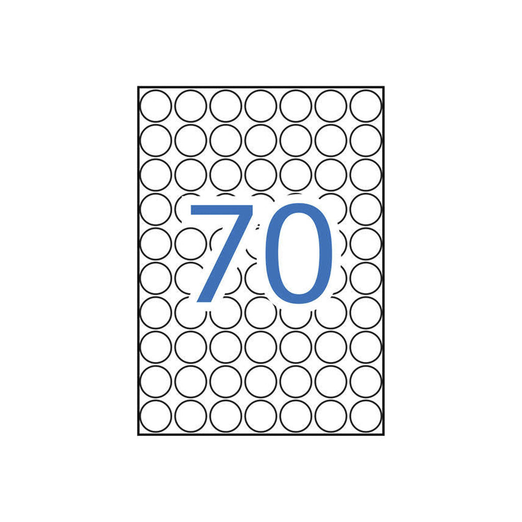 Etiquetas blancas circulares en formato A5, tamaño Ø 19,0 mm con adhesivo permanente. Perfectas para identificar, marcar precios, señalizar, clasificar... Este pack incluye 15 hojas con un total de 1.050 etiquetas. La excelente calidad de impresión en impresoras inkjet, láser o fotocopiadoras, así como para escritura manual, garantiza una imagen nítida y legible. Además, puedes descargar el software gratuito en www.apli.com para diseñar e imprimir todo tipo de etiquetas.