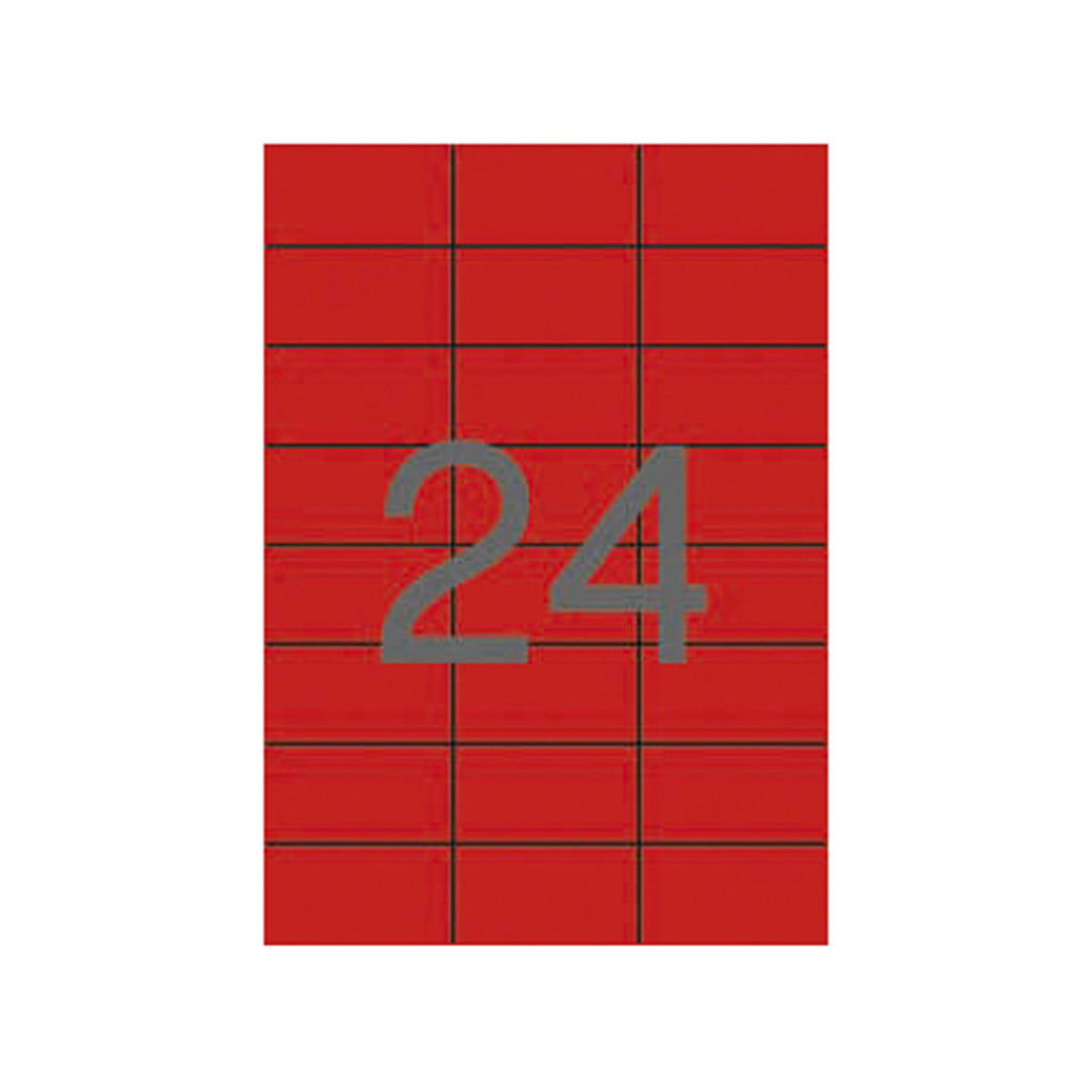 Las etiquetas rojas con cantos rectos y tamaño de 70,0 x 37,0 mm con adhesivo permanente son ideales para destacar la información en sobres de envío, paquetes u objetos. Este pack incluye 20 hojas con un total de 480 etiquetas.