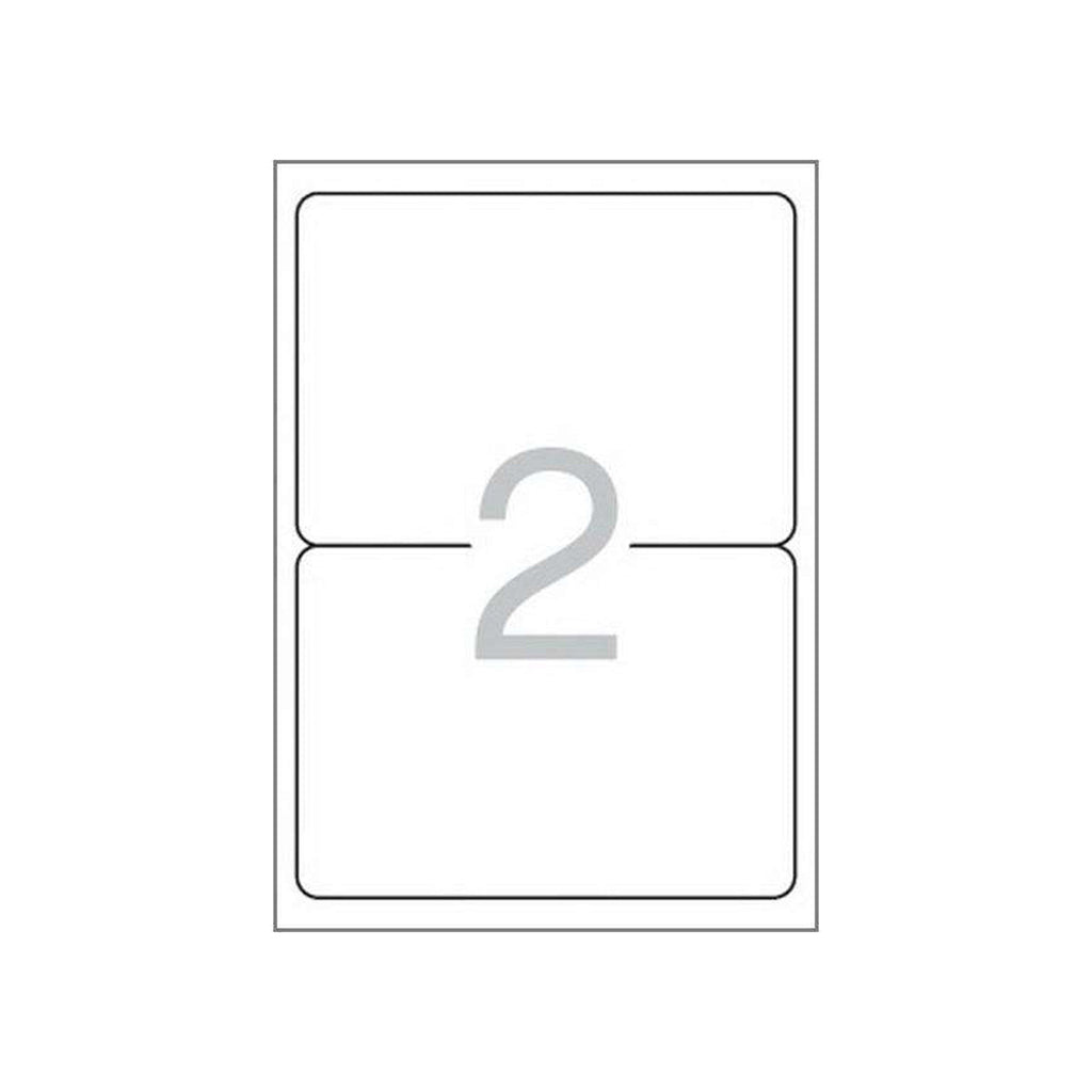 Etiquetas blancas cantos redondeados tamaño 199,6 x 144,5mm con adhesivo permanente para múltiples usos. Pack con 100 hojas (200 etiquetas).