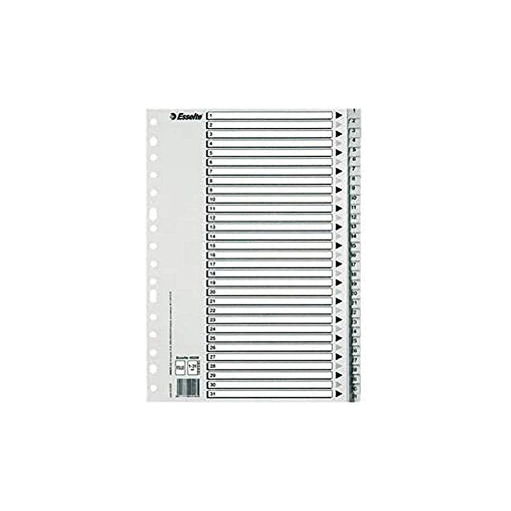 Esselte Bolsa de 25 Indices Numericos de Plastico - Pestañas 1 al 31 - Multitaladro - Formato A4 - Color Gris (25 unidades)