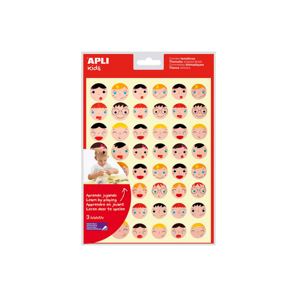La Bolsa de gomets Emociones es un producto diseñado para ayudar a los más pequeños a expresar sus emociones. Cada bolsa contiene 3 hojas de gomets con 16 diseños diferentes, con dos medidas de gomets en la misma hoja: Ø 23 mm y Ø 20 mm. En total, cada bolsa contiene 144 gomets, con 48 gomets por hoja.
