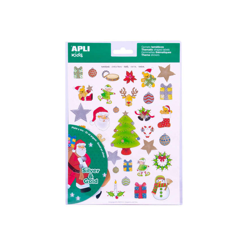 Bolsa de gomets temáticos de Navidad con tinta en acabado oro y plata. Desarrollados con la colaboración de educadores, estos gomets ayudan a los niños a identificar conceptos, objetos y animales asociados a la Navidad, facilitándoles el aprendizaje de las distintas festividades. Las divertidas ilustraciones les permitirán enriquecer su vocabulario mientras desarrollan sus habilidades motoras. Los gomets tienen adhesivo removible para que puedan corregir si se equivocan.