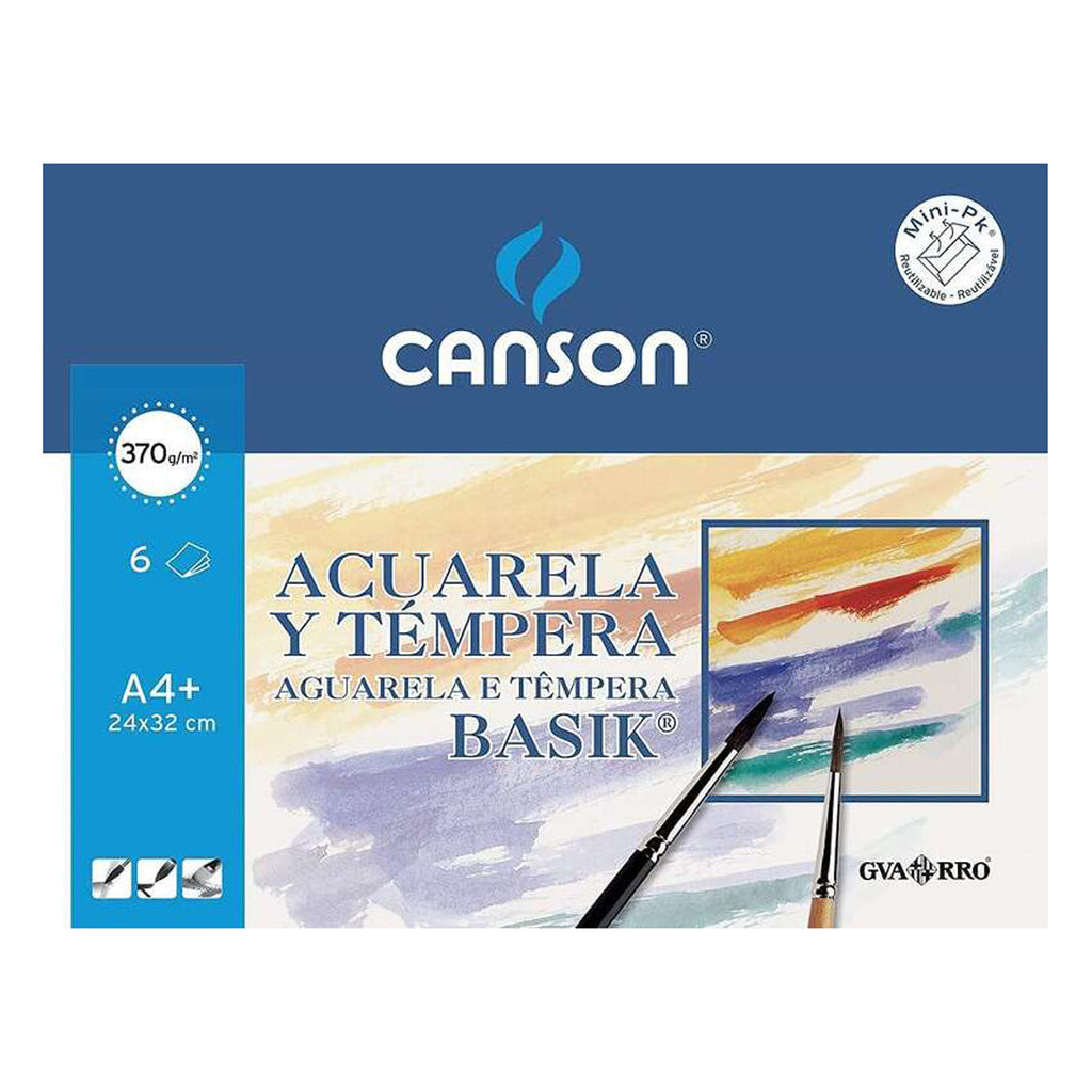 Canson Acuarela Basik Minipack de 6 Hojas A4+ 370g
