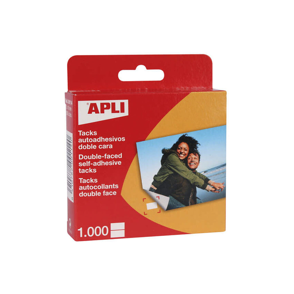 Apli Pack de 1000 Tacks Autoadhesivos Doble Cara - Tamaño 12x16mm - Ideal para Manualidades y Albumes - Libre de Acidos
