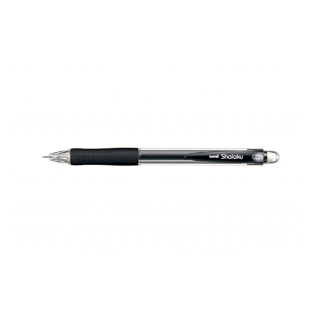 Uni-ball Shalaku M5-100 Portaminas - Ancho de Trazo 0.5mm - 2 Minas HB - Empuñadura de Caucho Antifatiga - Goma de Borrar Integrada - Color Negro
