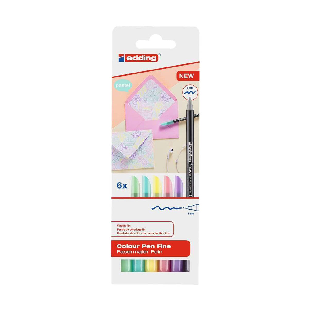 Edding 1200 Pastel Pack de 6 Rotuladores - Punta Redonda - Trazo 1mm - Tinta con Base de Agua - Colores Pastel Surtidos