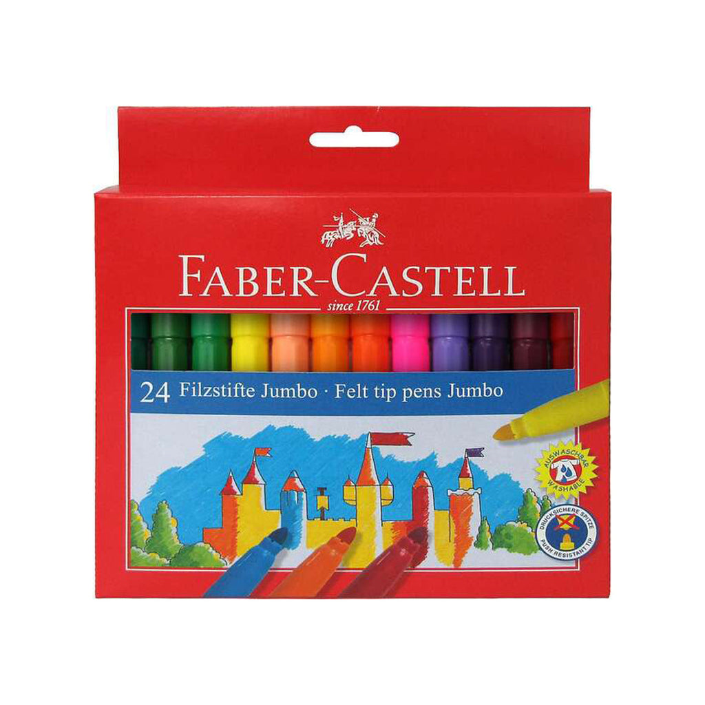 Faber-Castell Jumbo Pack de 24 Rotuladores Punta Gruesa - Tinta con Base de Agua Lavable - Colores Surtidos