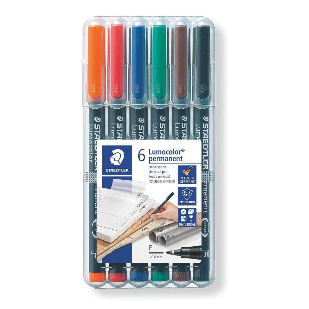 Staedtler Lumocolor 318 Pack de 6 Rotuladores Permanentes - Punta Fina Redonda - Trazo 0.6mm - Capuchon con Clip - Secado Rapido - Colores Surtidos