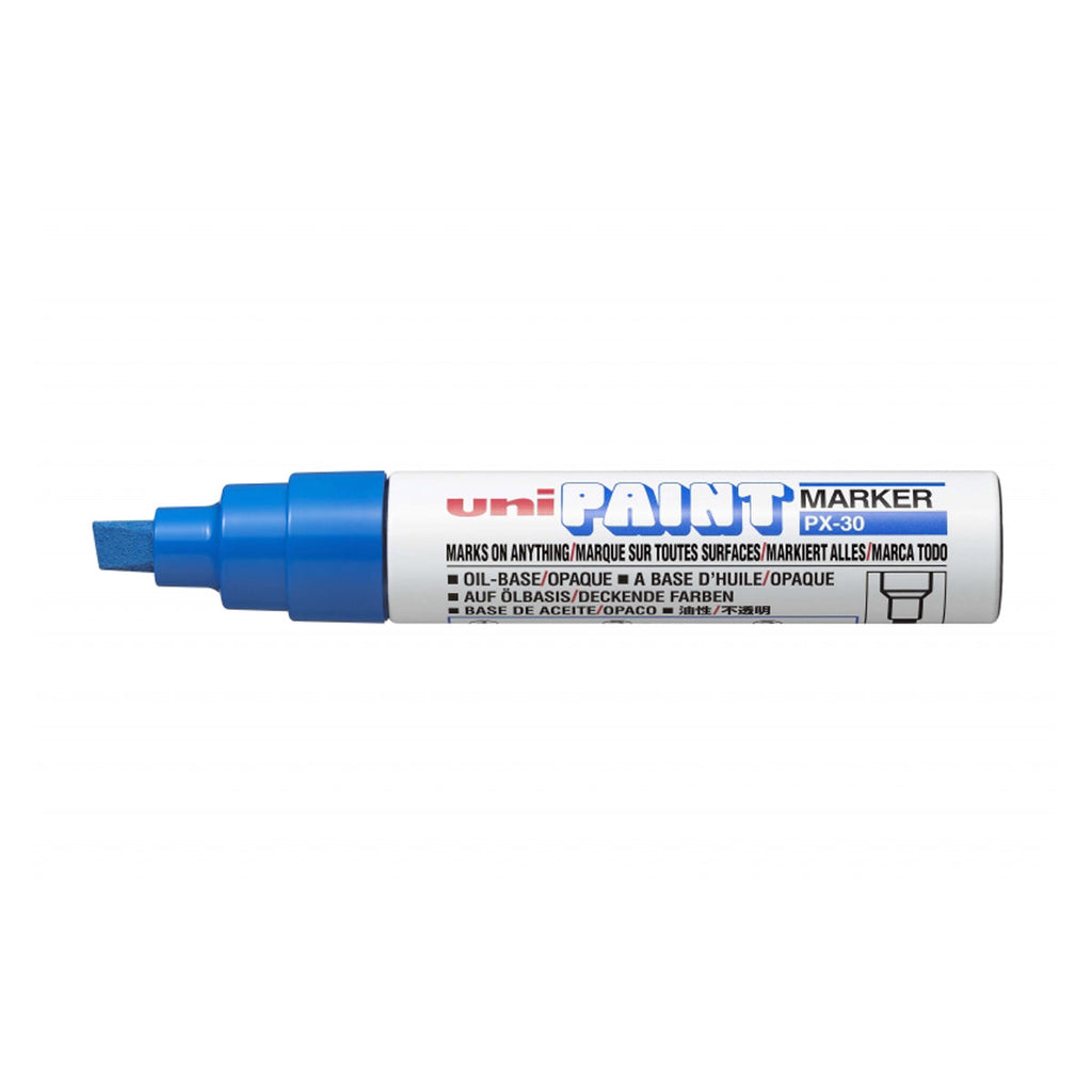 Uni-ball PX-30 Marcador de Pintura - Punta Biselada Acrilica 4-8.5mm - Linea Gruesa - Cuerpo de Aluminio - Tinta Permanente Resistente a Luz y Agua - Color Azul