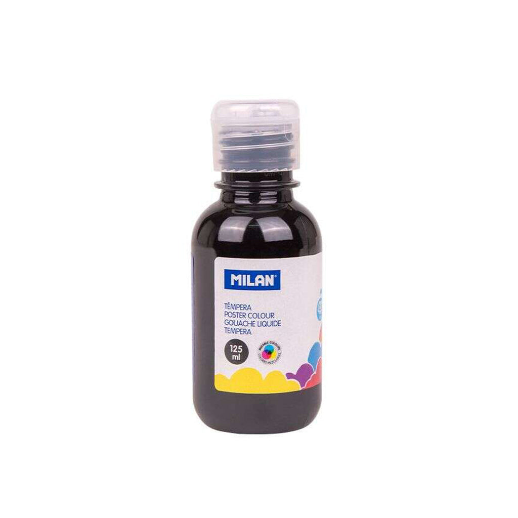 Milan Botella de Tempera 125ml - Tapon Dosificador - Secado Rapido - Mezclable - Color Negro (3 unidades)