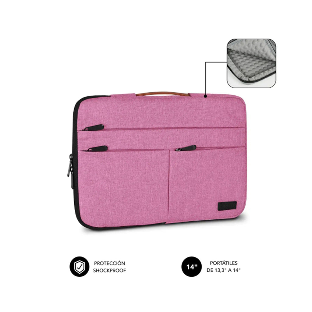 Subblim Funda Air Padding 360 Portátil de 13.3" a 14" - Protección 360º con Air Padding - Múltiples bolsillos - Resistente y duradera - Color Rosa