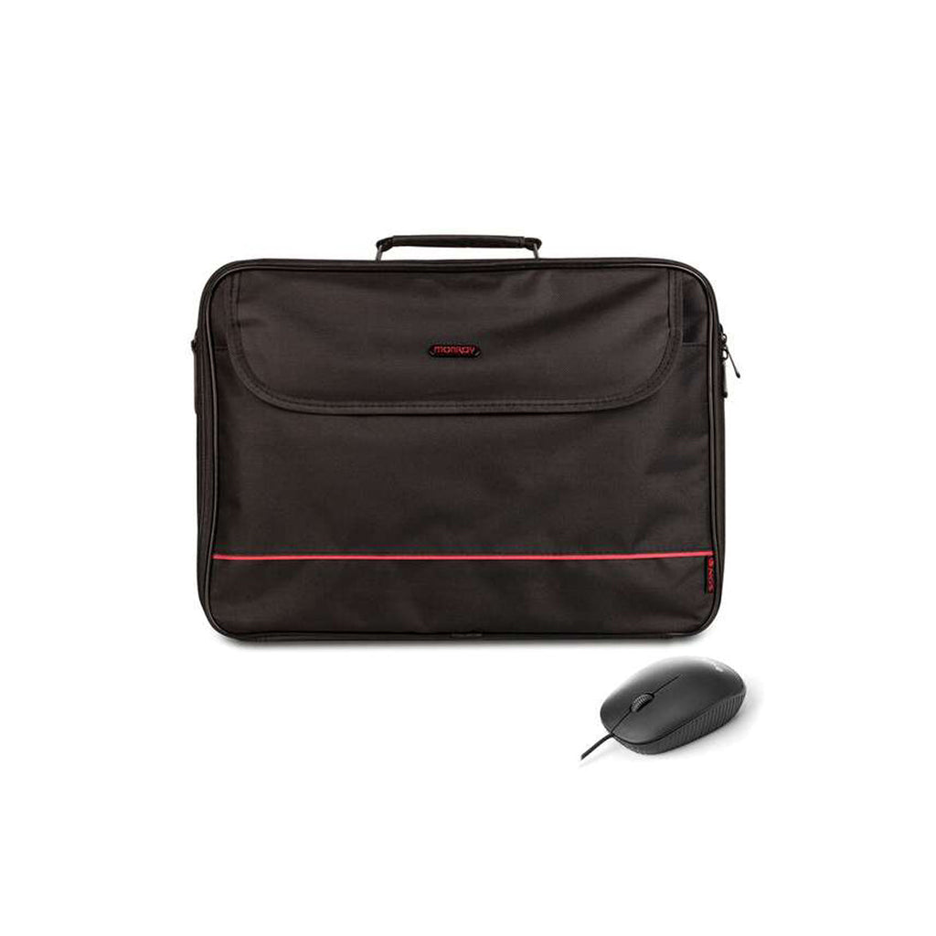 NGS Bureau Pack de Maletin para Portatil 16" + Raton USB 800dpi - Acolchado Interior - 2 Compartimentos y Bolsillo Exterior - Color Negro