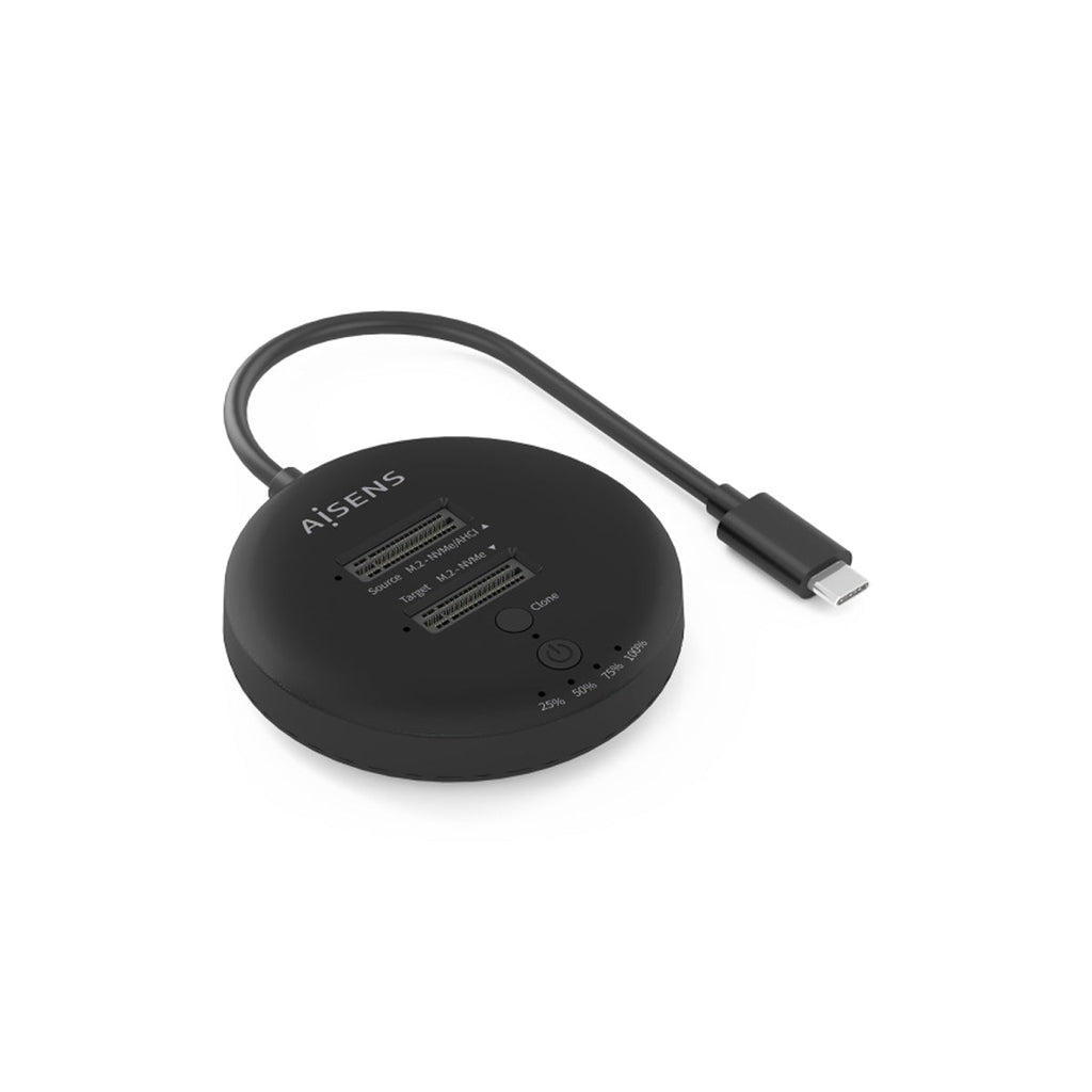 Aisens ASDS-2M2N05 Estacion de Docking de Doble Bahia M.2 NVME a USB-C 3.2 Gen2x2 - Clone - Color Negro