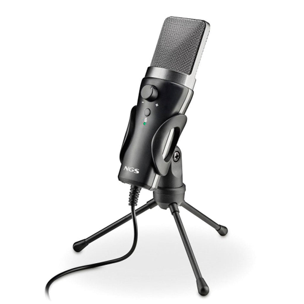 NGS MS120USB Microfono USB para Streaming - Configuracion Ajustable - Grabacion Cardioide - Puerto de Monitorizacion de Auriculares - Compatible con PS4, PS5 y PC - Color Negro