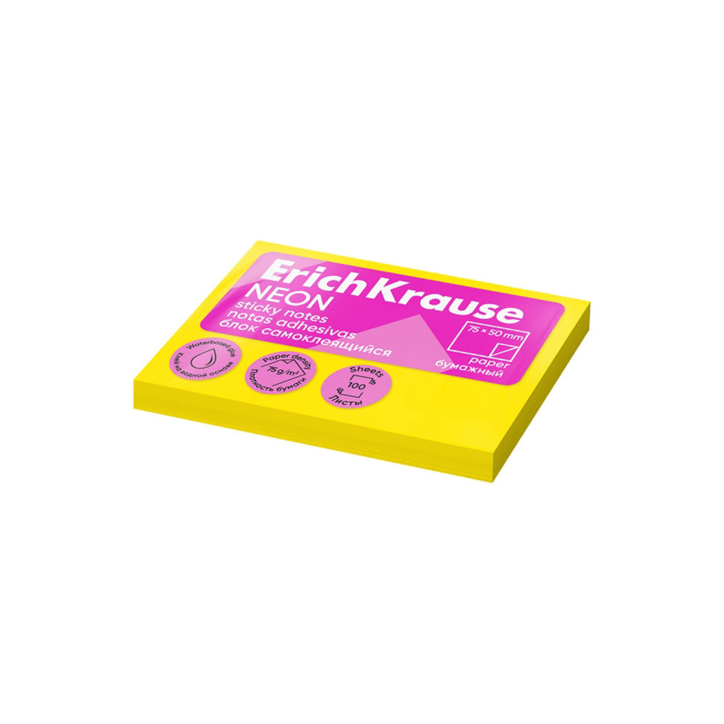 ErichKrause Bloc de 100 Notas Adhesivas 50x75mm - Removibles - Color Amarillo Neon