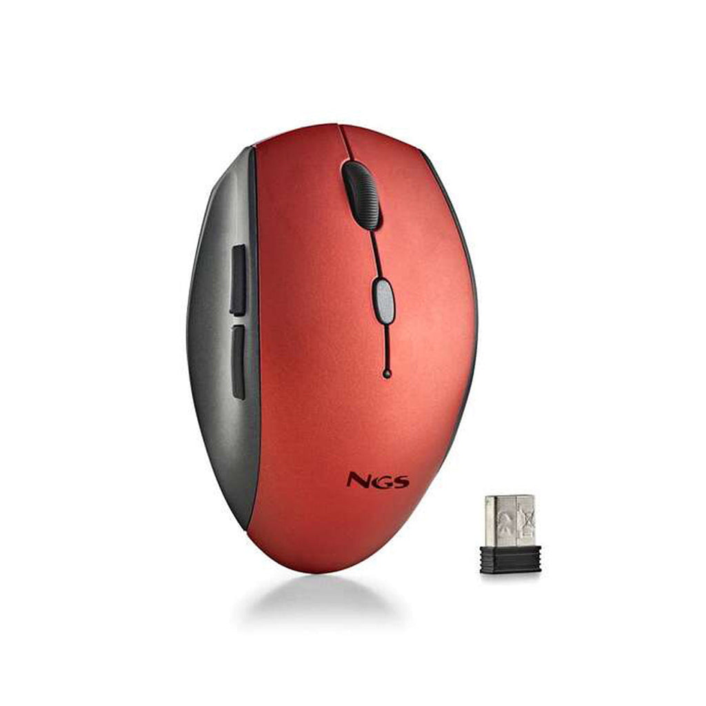 NGS Raton Inalambrico Ergonomico para Portatiles y Ordenadores - 5 Botones y Rueda de Desplazamiento - Teclas Silenciosas - Color Rojo