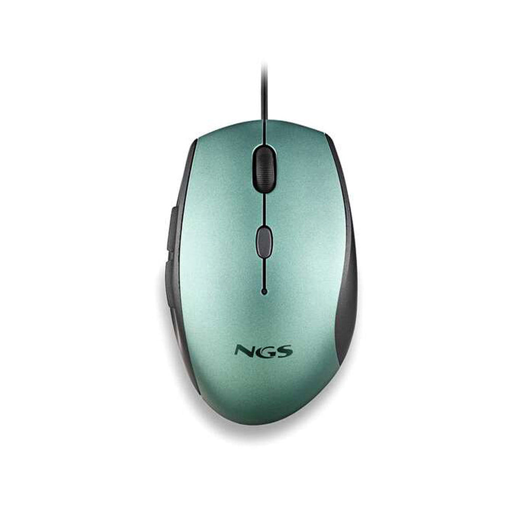 NGS Moth Ice Raton USB 1600dpi + Adaptador USB-A a USB-C - 5 Botones - Uso Diestro - Cable de 1.80m - Color Verde Metalizado/Negro
