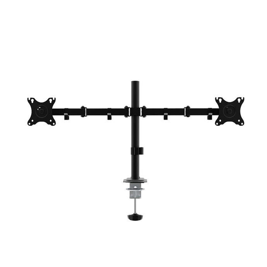 -Soporte para dos monitores / TV con soporte de 10 kg por cada brazo, fabricado con acero de alta resistencia y pintado con pintura electrostática para un acabado perfecto.
