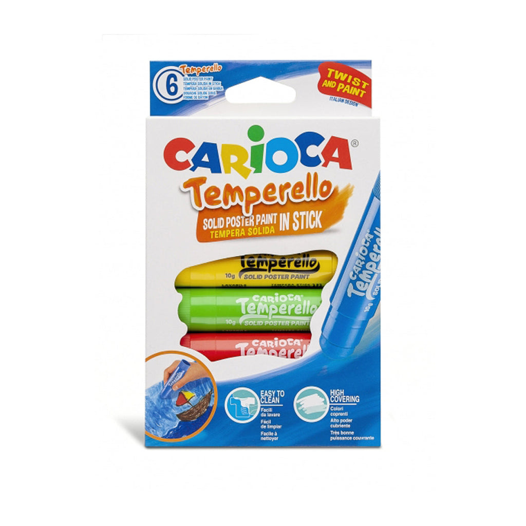 Carioca Temperello Pack de 6 Temperas Solidas - Colores Brillantes y Lavables - Gran Cobertura - Faciles de Mezclar - Acabado Satinado - Secado Rapido - No Arruga el Papel - Color Varios